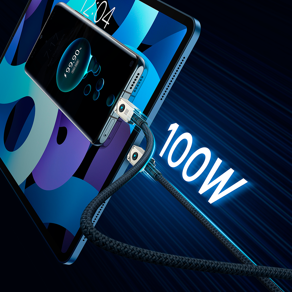 Mit Unterstützung für das Laden bis zu 100W ermöglicht das Kabel das ultraschnelle Aufladen von kompatiblen Smartphones, Tablets und Laptops,