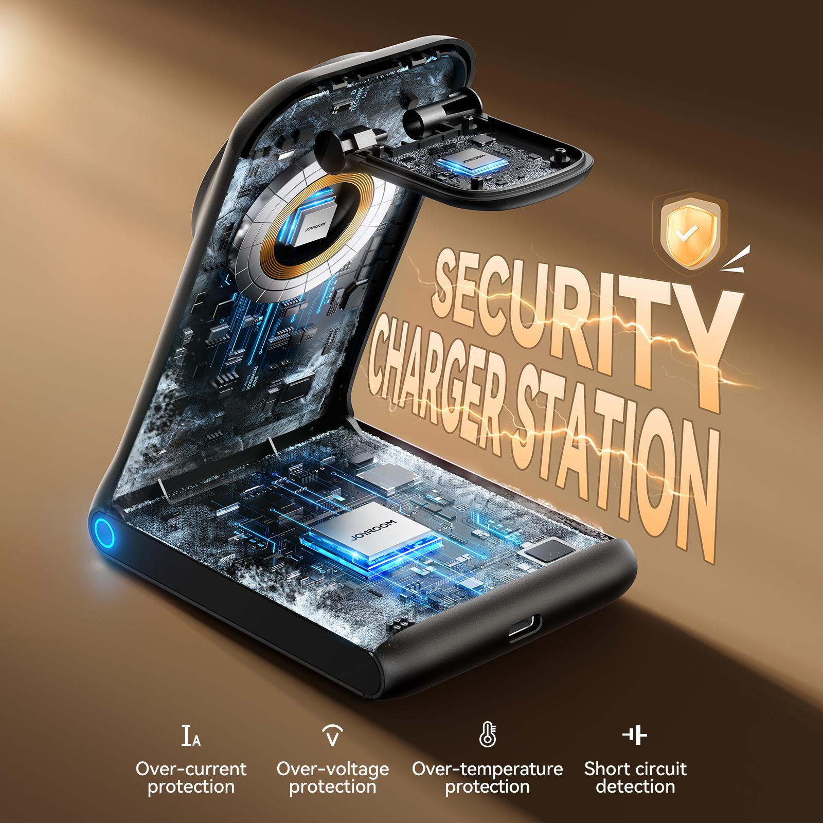 Befreie dich von verwickelten Kabeln und genieße das kabellose Laden mit Joyroom JR-W15, einer idealen 3-in-1-Station für Büro oder Zuhause.