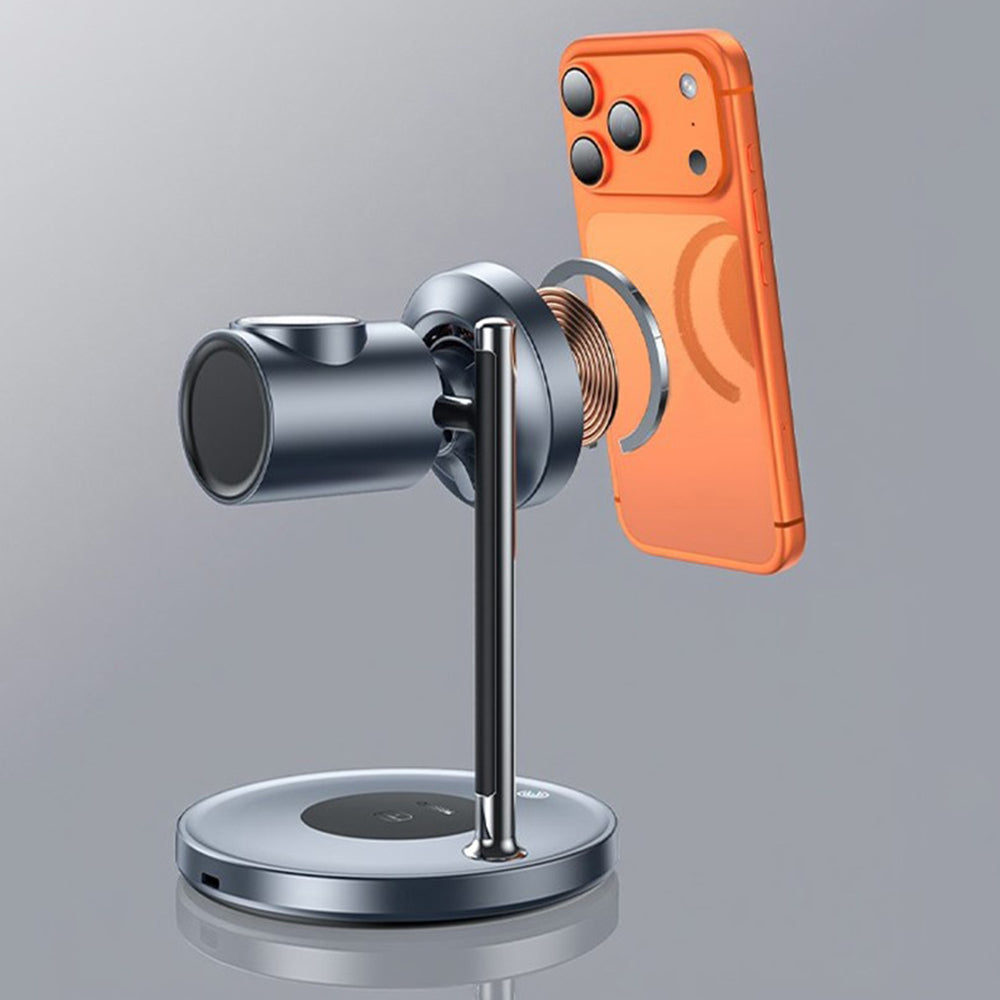 Die Ladestation versorgt das Telefon, die Smartwatch und die kabellosen Kopfhörer gleichzeitig von einem einzigen Stromanschluss aus.