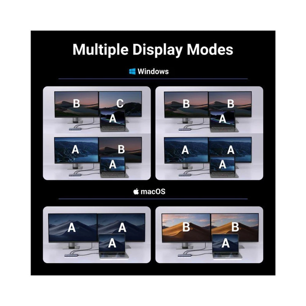 oder USB-Sticks. Die 2 HDMI-Ports liefern ein klares und flüssiges Bild in 4K 60Hz Auflösung, und die MST-Technologie (Multi-Stream Transport) ermöglicht die Anzeige unterschiedlicher Inhalte auf zwei Monitoren gleichzeitig (verfügbar auf Windows). Der USB-C PD (Power Delivery) Port unterstützt schnelles Laden bis zu 100W,