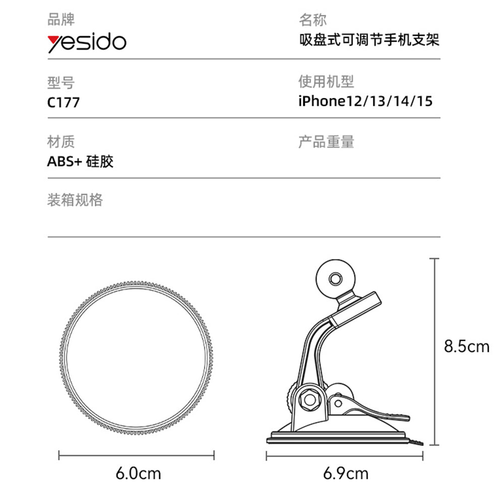 Magnetische Autohalterung Yesido C177, Universal, Schwarz