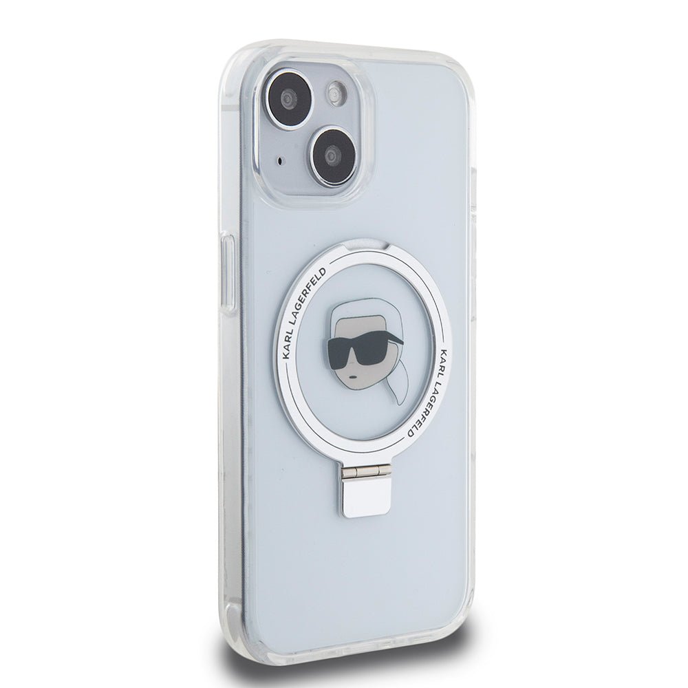 MagSafe Hülle für Apple iPhone 15, Karl Lagerfeld, Ring Stand Karl's Head, Weiß