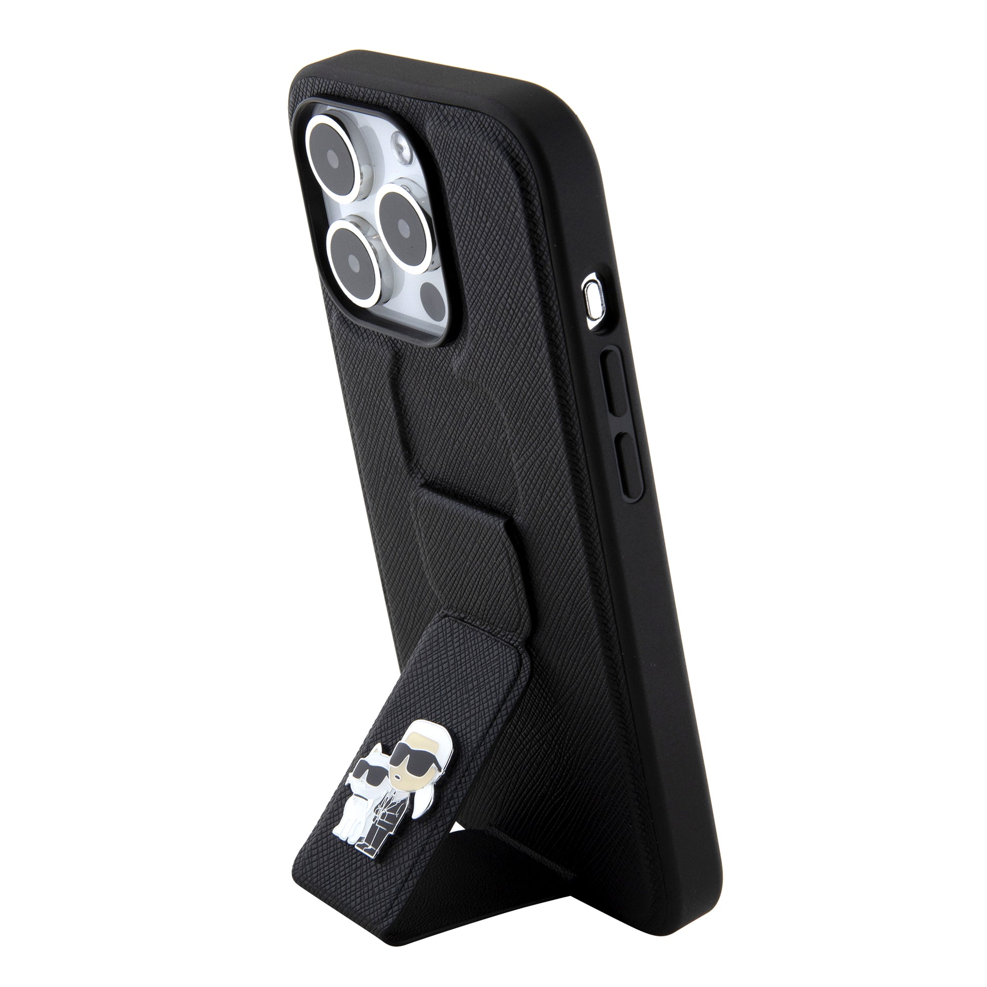 MagSafe Hülle für Apple iPhone 15 Pro, Karl Lagerfeld, Saffiano Gripstand Karl & Choupette, Schwarz