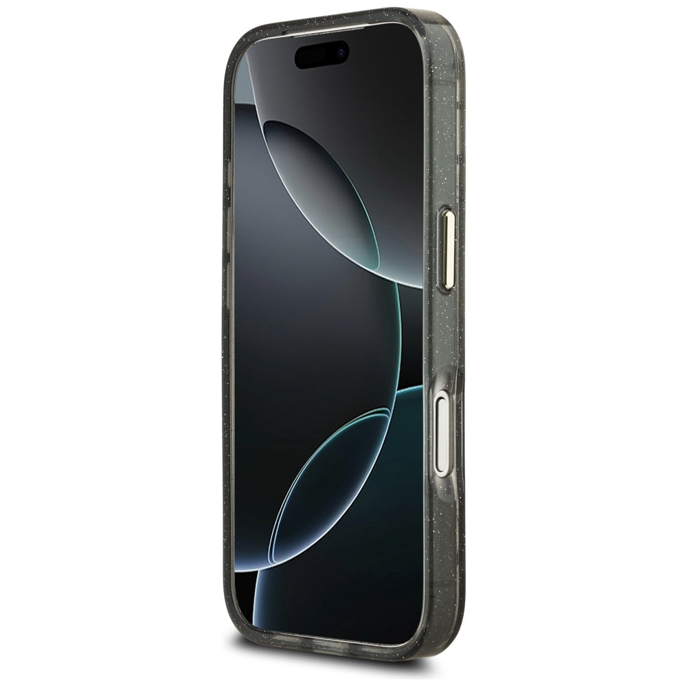 MagSafe Hülle für Apple iPhone 17 Pro, Guess, IML Metal Glitter Flowers Triangle, Schwarz