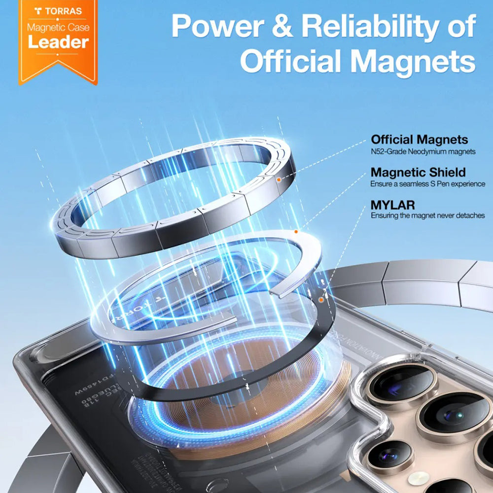 MagSafe Hülle für Samsung Galaxy S25 Ultra S938, Torras, Pstand, Transparent