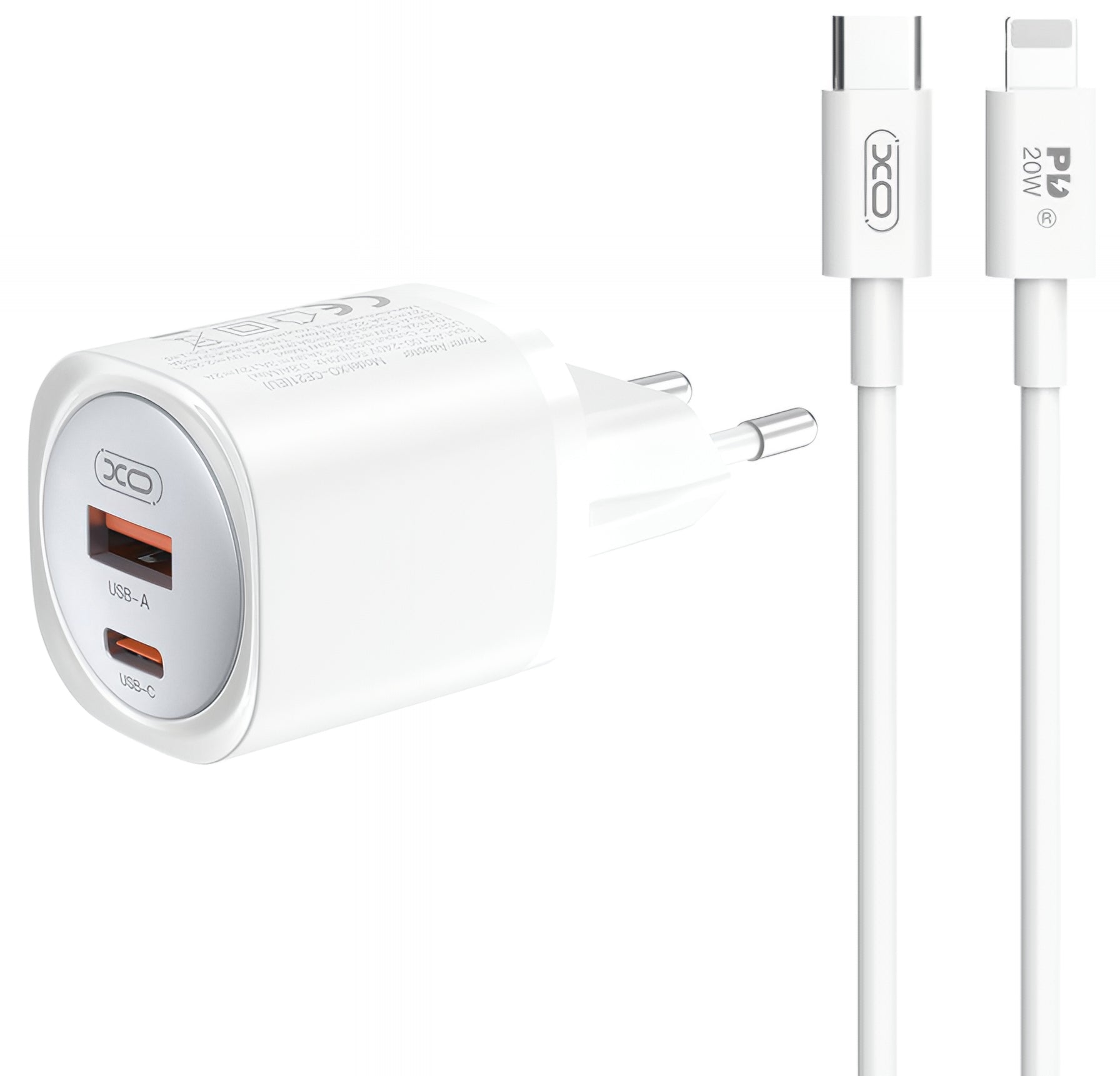 Netzladegerät mit Lightning-Kabel XO Design CE21, 30W, 3A, 1 x USB-A - 1 x USB-C, Weiß
