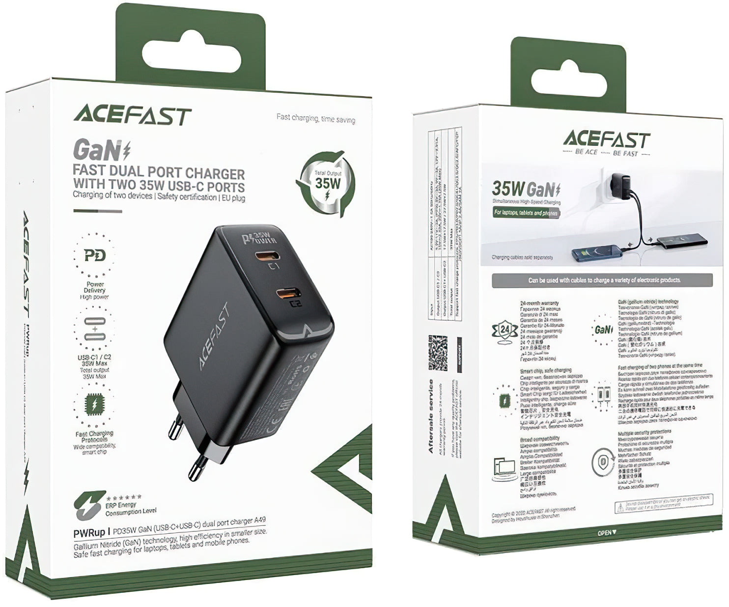 Netzwerk-Ladegerät Acefast A49, 35W, 3A, 2 x USB-C, Schwarz