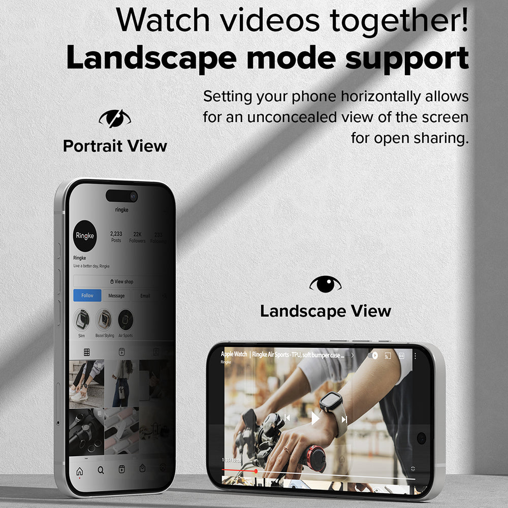 Schutzfolie Privacy Ringke Easy Slide für Apple iPhone 16 Plus / 15 Plus, gehärtetes Glas, Vollkleber, Set mit 2 Stück
