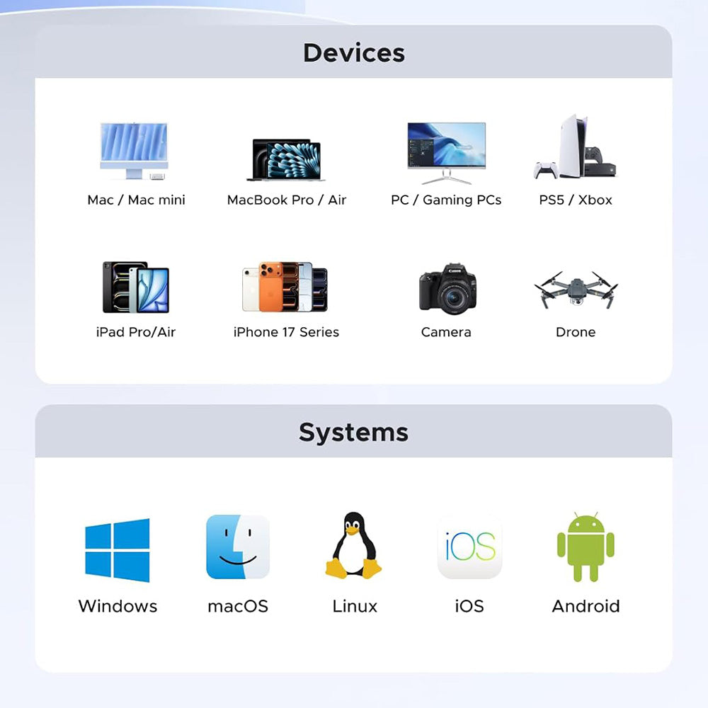 Die externe SSD ist kompatibel mit Windows, macOS, Linux, iOS und Android und ermöglicht eine direkte Verbindung ohne zusätzliche Installationen oder Konfigurationen.