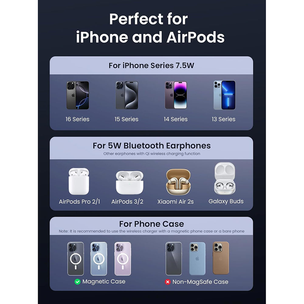 - Kompatibilität: iPhone 12-16, AirPods 2/3/Pro, Qi-kompatible Geräte