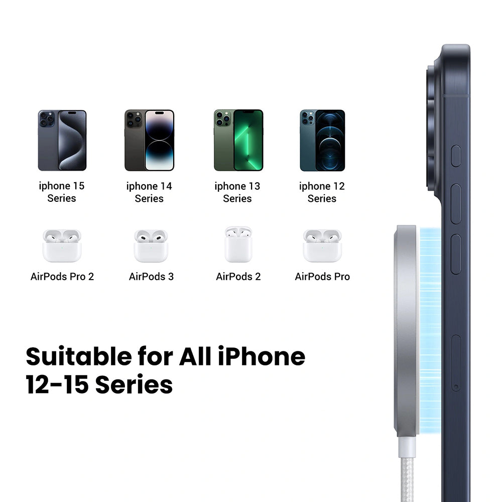 Kompakt und leicht, ist das UGREEN W703 perfekt für den täglichen Gebrauch sowie für Reisen, kompatibel mit iPhone 12 bis iPhone 16,
