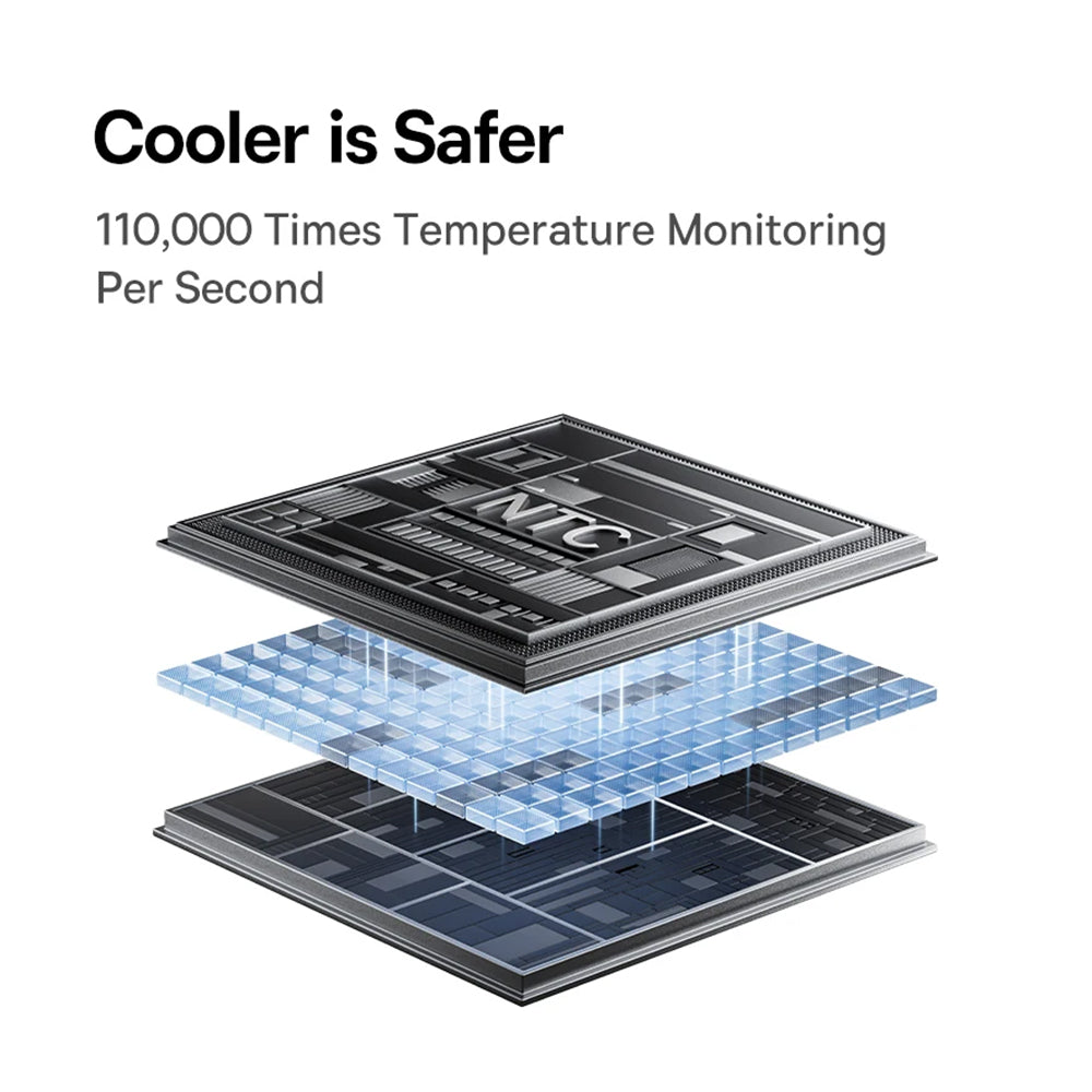 • Pour un contrôle total, l'accumulateur est équipé d'un écran généreux qui affiche en temps réel à la fois le pourcentage d'énergie et la puissance de charge.