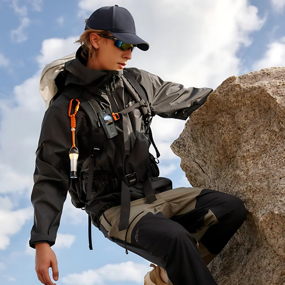 Construite en ABS + PC, la caméra est légère, durable et parfaite pour une utilisation en extérieur. Le capteur G à l'intérieur protège les fichiers en cas de mouvement brusque,