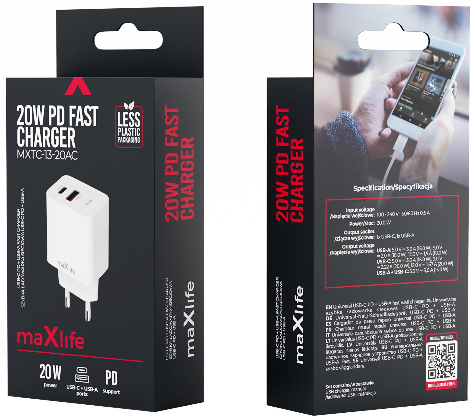 Le chargeur réseau MaXlife MXTC-13-20AC est la solution polyvalente pour vous si vous souhaitez charger simultanément deux appareils, rapidement et en toute sécurité.