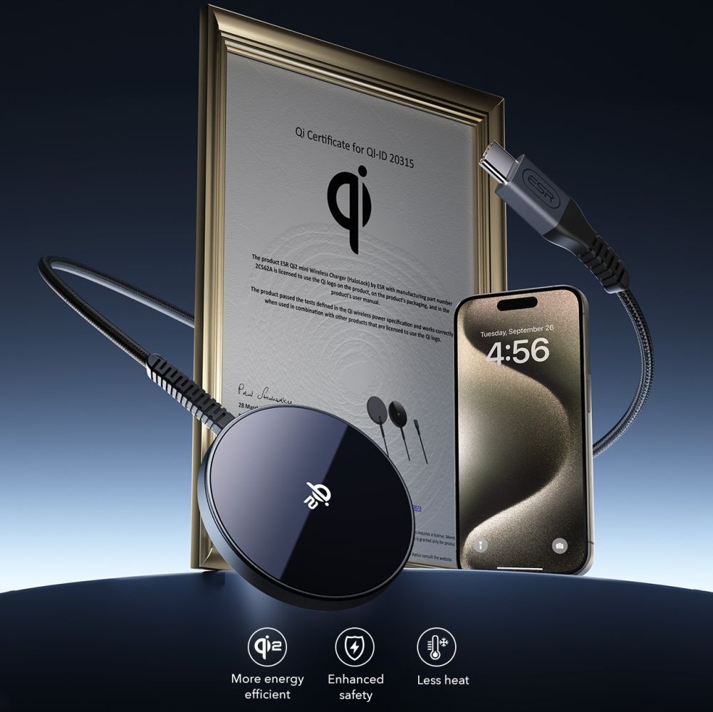 Chargeur Réseau Sans Fil ESR HaloLock, 15W, 1.67A, Noir