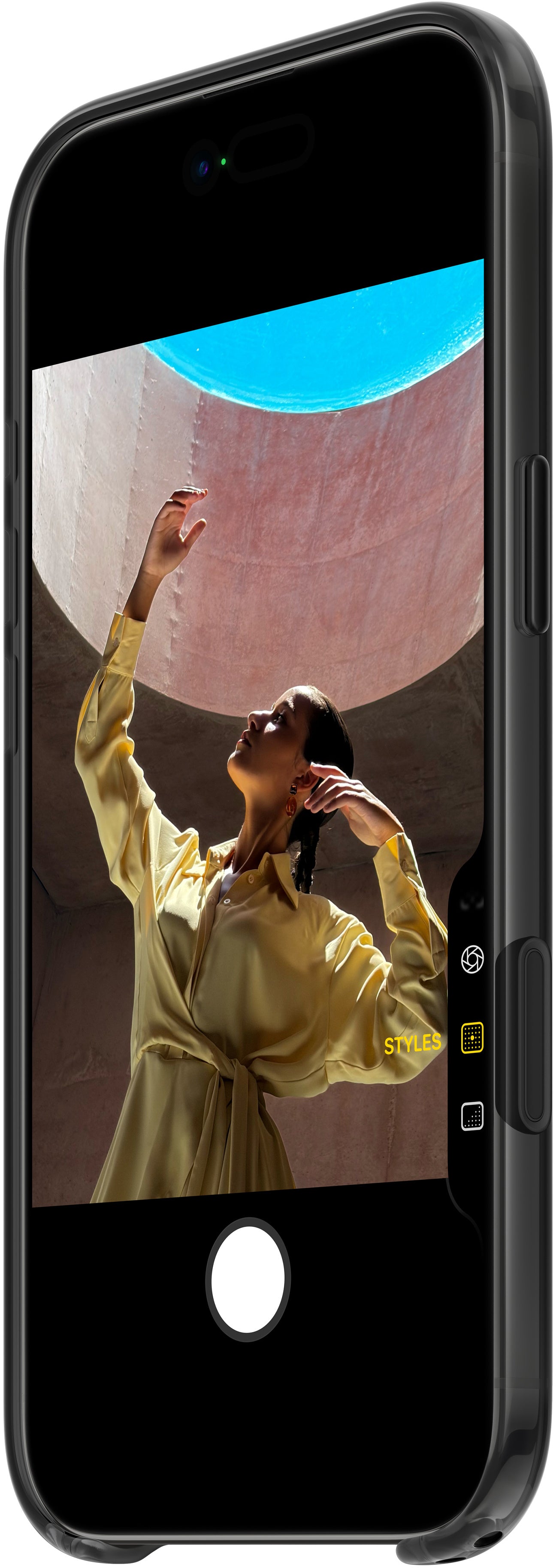 Compatible avec Camera Control, l'étui intègre une couche conductrice et un cristal de saphir qui transmettent précisément les mouvements des doigts,