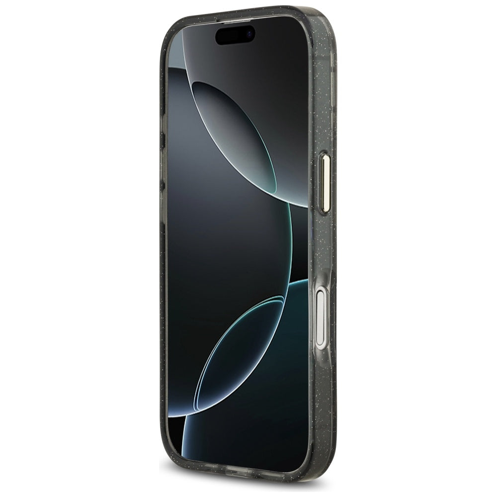 Étui MagSafe pour Apple iPhone 17, Guess, IML Metal Glitter Flowers Triangle, Noir