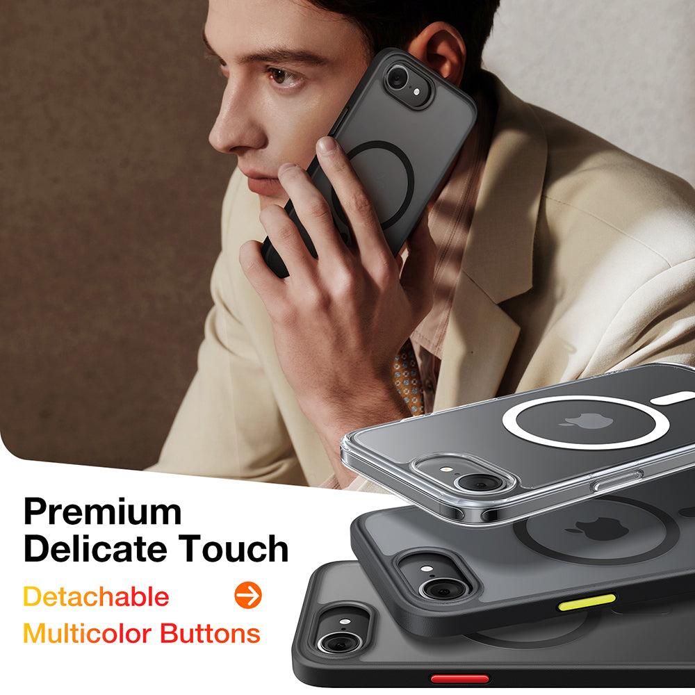 Cette coque ultra résistante est équipée d'un anneau magnétique optimisé pour faciliter l'association avec les accessoires MagSafe.