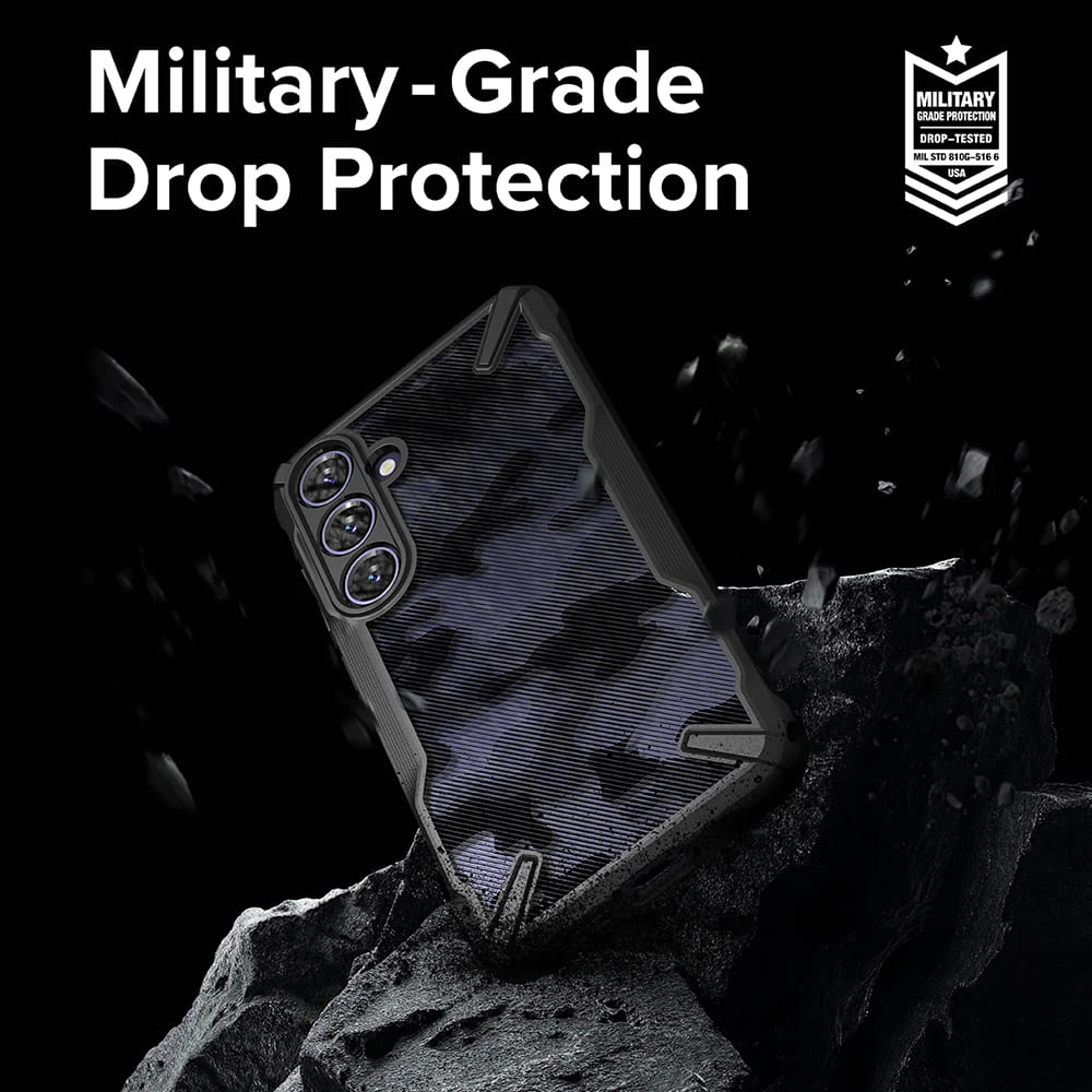 • La nouvelle série Fusion X incorpore le polycarbonate classique, transparent, dans un cadre élastique en silicone renforcé, avec un design innovant en forme de "X", centré sur les quatre coins de la housse.