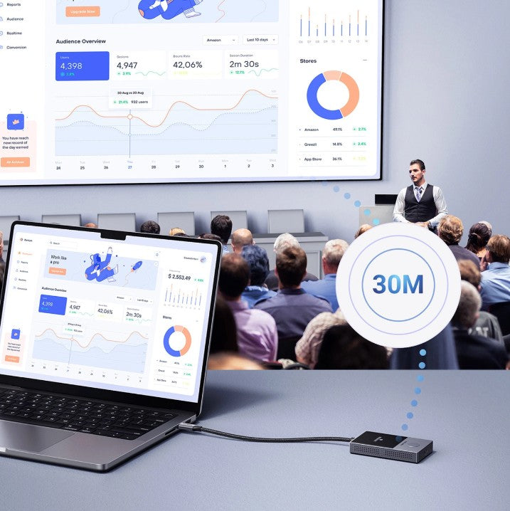 d'une image fluide et d'une configuration ultra-rapide, sans installation de logiciel. Il transmet un signal HDMI en format 1080p à 60Hz sur une distance jusqu'à 30 mètres