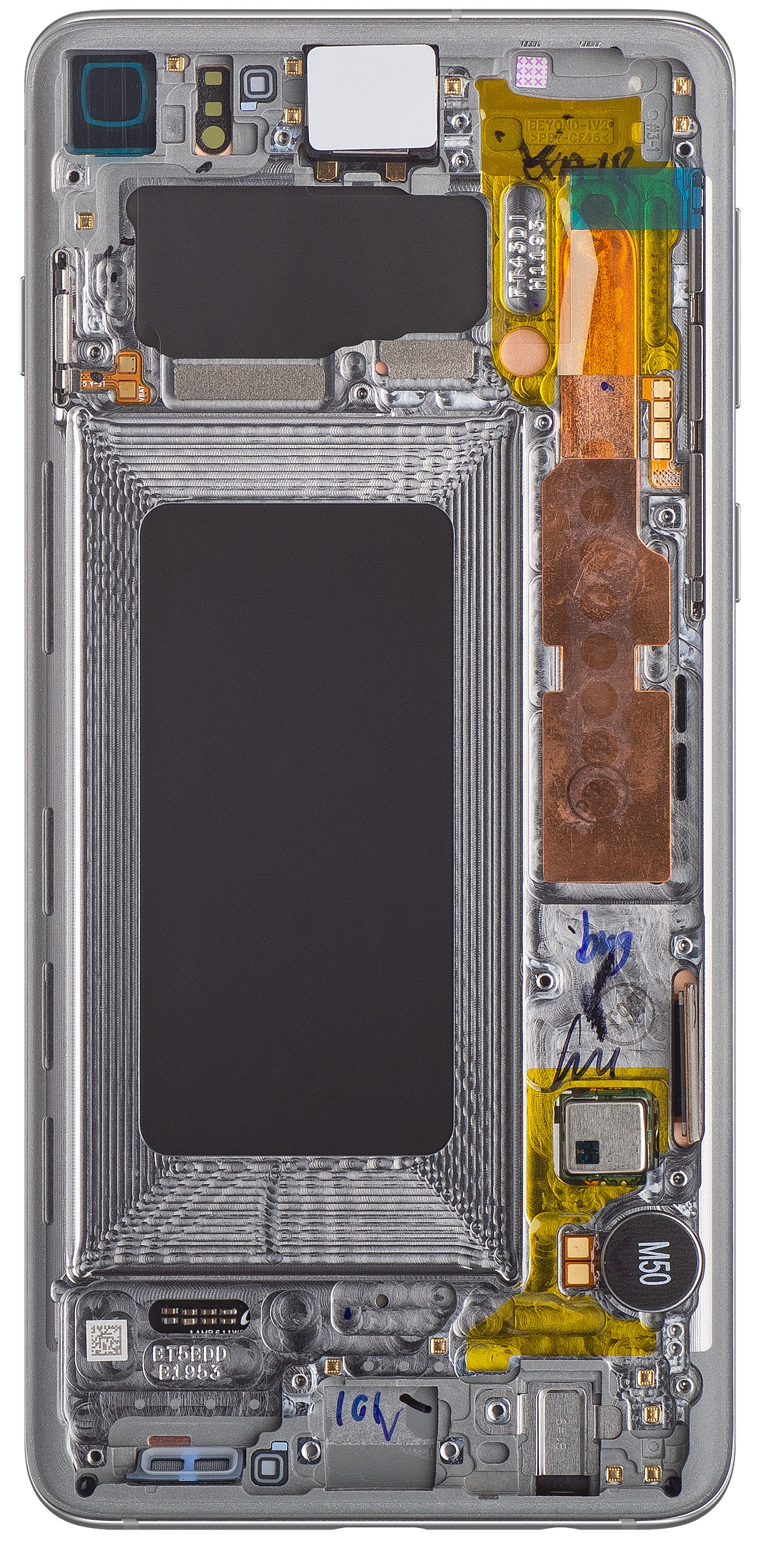 Samsung Galaxy Galaxy S10 G973 Écran tactile avec cadre, argent (blanc prisme), Service Pack GH82-18850B