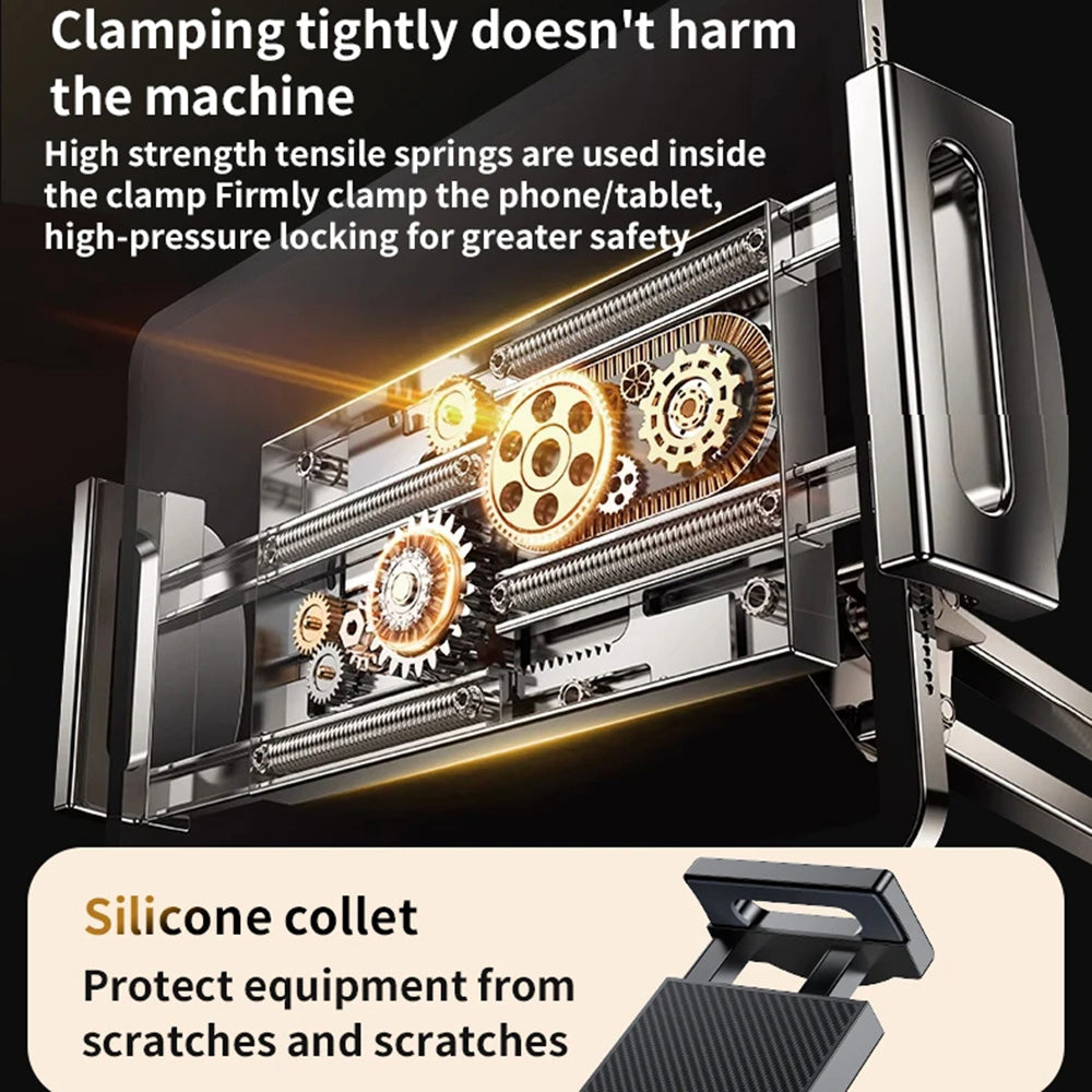 Les pinces avec protection en silicone maintiennent l'appareil stable et le protègent contre les rayures. Le design à double canal permet la fixation sur le bureau,