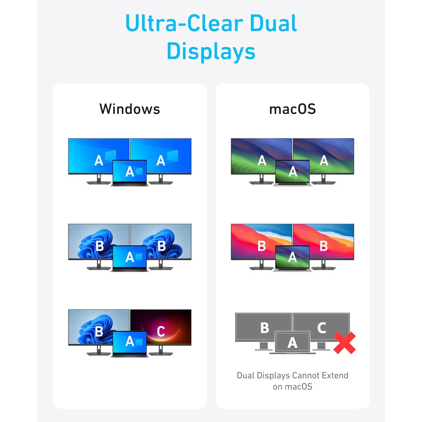 dual video outputs, fast charging, ultra-fast data transfer, and extended compatibility with modern devices. With 2 HDMI ports,