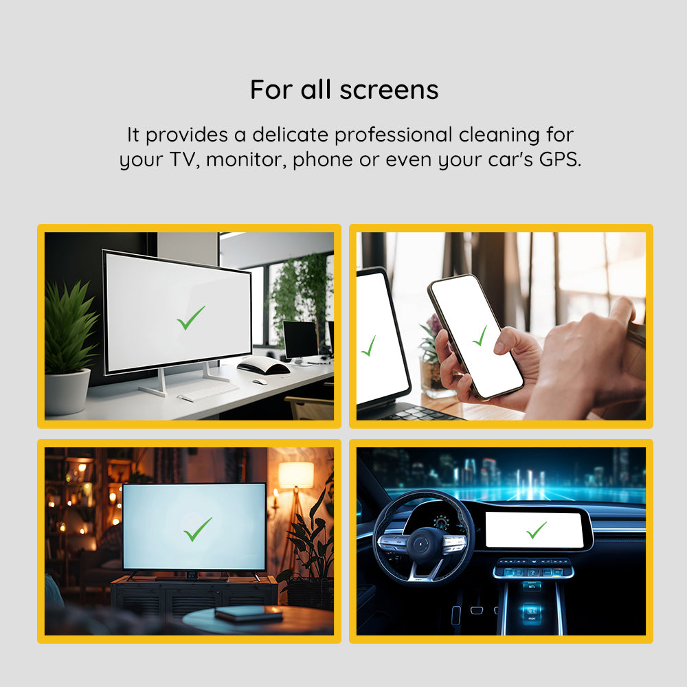 • Can be used on any type of screen: LED, OLED, LCD, Retina, touch without the risk of damage or dulling.