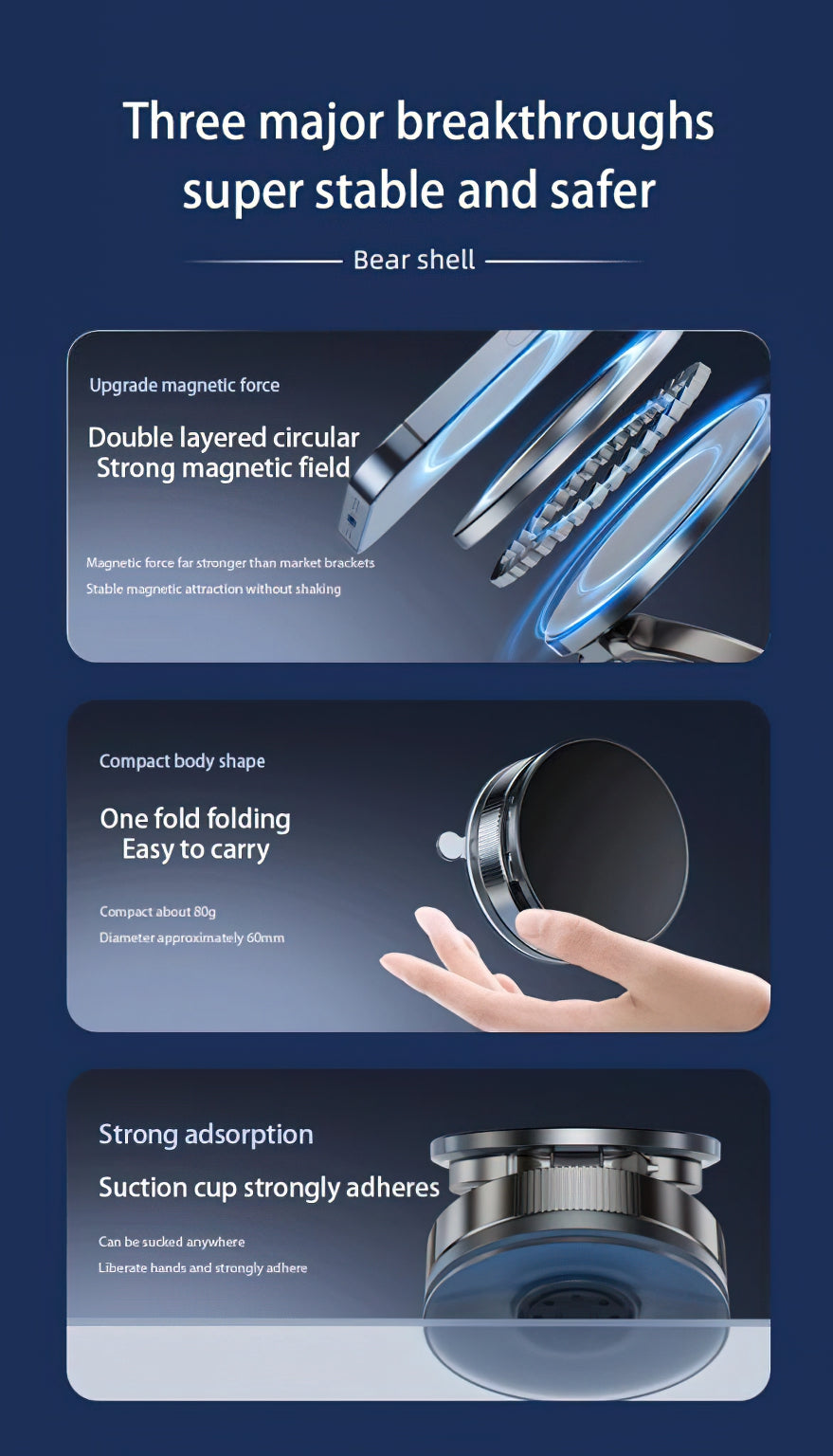 allows easy installation and removal on various smooth surfaces - dashboard, windshield, desk, or wall. With 17 strong N52 magnets,