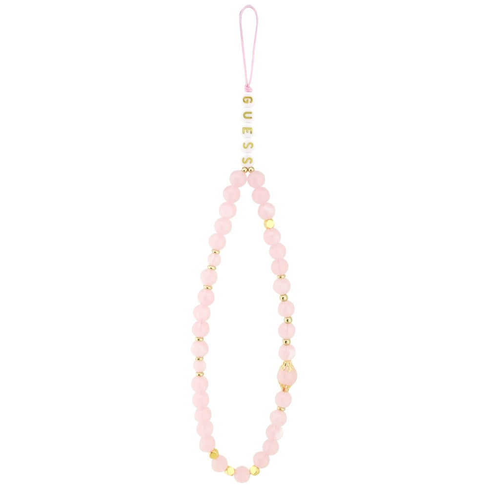 MagSafe Case for Apple iPhone 17 Pro, Guess, 4G Triangle Logo with Pearl Strap, Pink