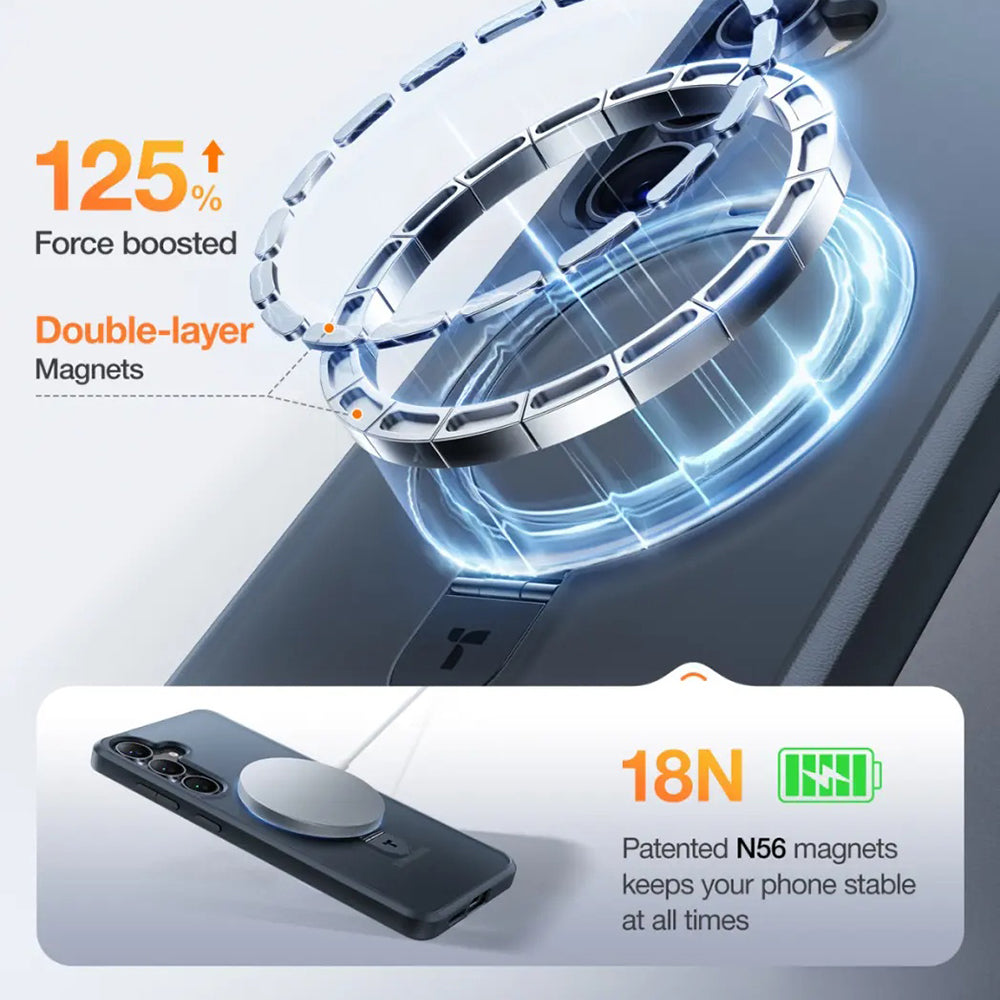 MagSafe Case for Samsung Galaxy S25+ S936, Torras, Ostand, Black