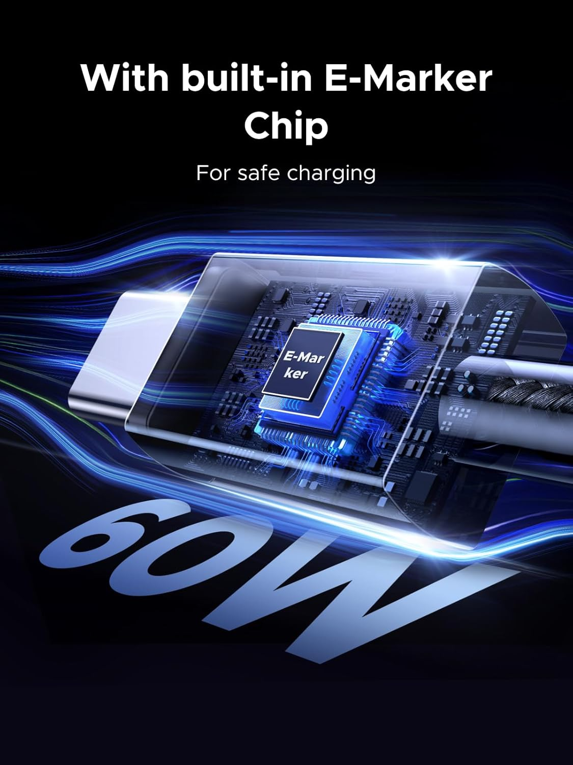 The cable supports charging up to 60W and PD 3.0 technology, suitable for fast charging of smartphones, tablets,