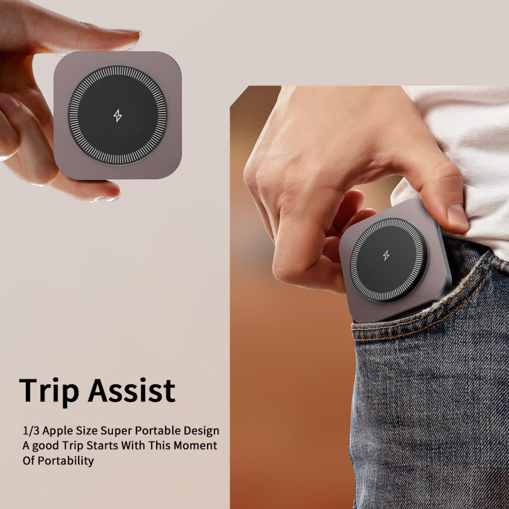 smartwatch, and earphones or other accessories compatible with wireless charging, using a single device. The charger is equipped with MagSafe wireless technology,